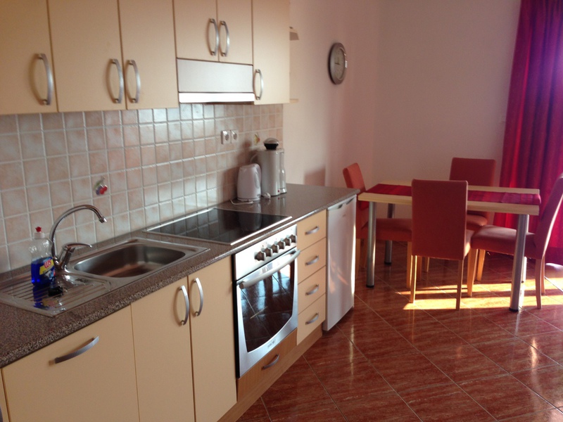 Es steht Ihnen zur Verfügung: 1 Schlafzimmer mit Doppelbett, 1 Schlafzimmer mit 2 getrennten Betten, 1 Badezimmer, Vorraum und 1 großes Wohn und Esszimmer mit voll ausgestatteter Küche, die keine Ausstattungswünsche übrig lässt.